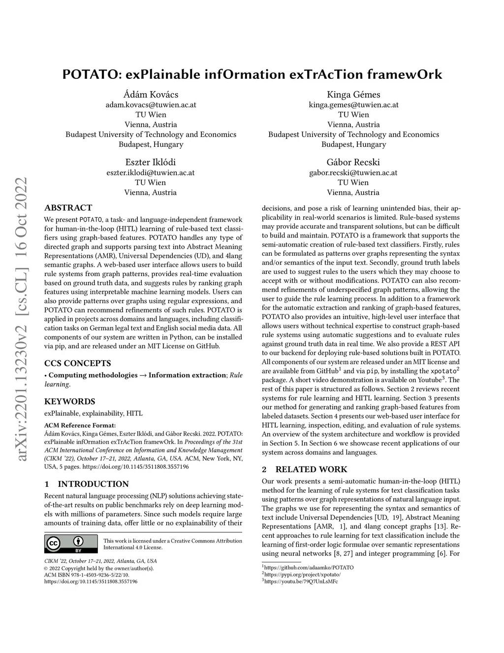 POTATO: exPlainable infOrmation exTrAcTion framewOrk