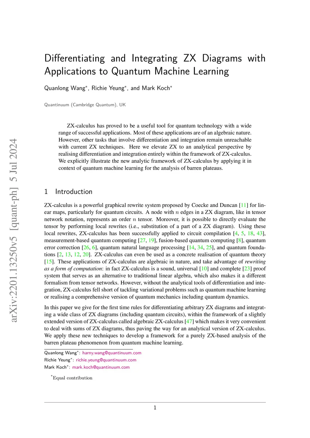 Differentiating and Integrating ZX Diagrams with Applications to Quantum