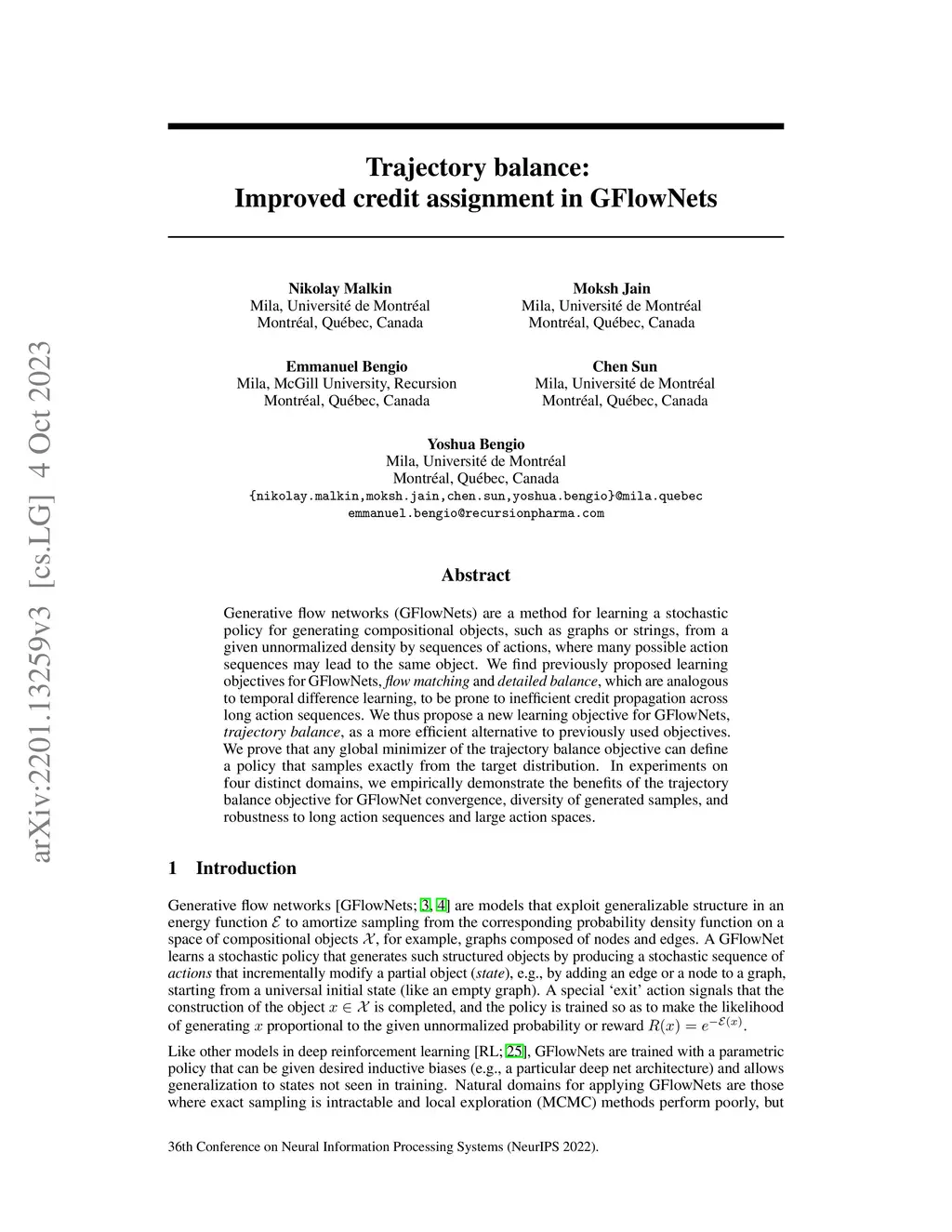 Trajectory balance: Improved credit assignment in GFlowNets