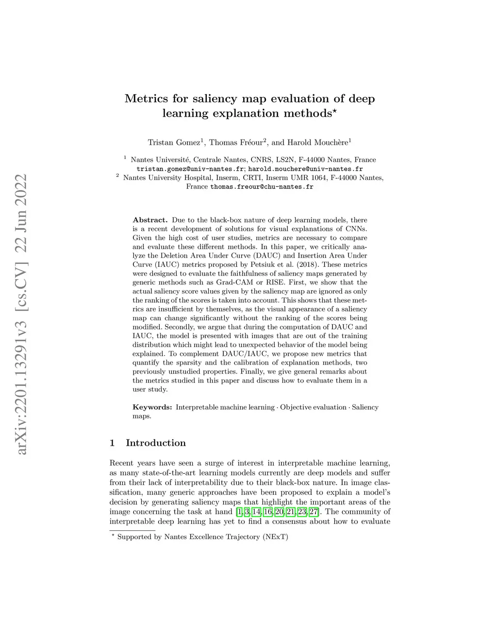 Metrics for saliency map evaluation of deep learning explanation methods