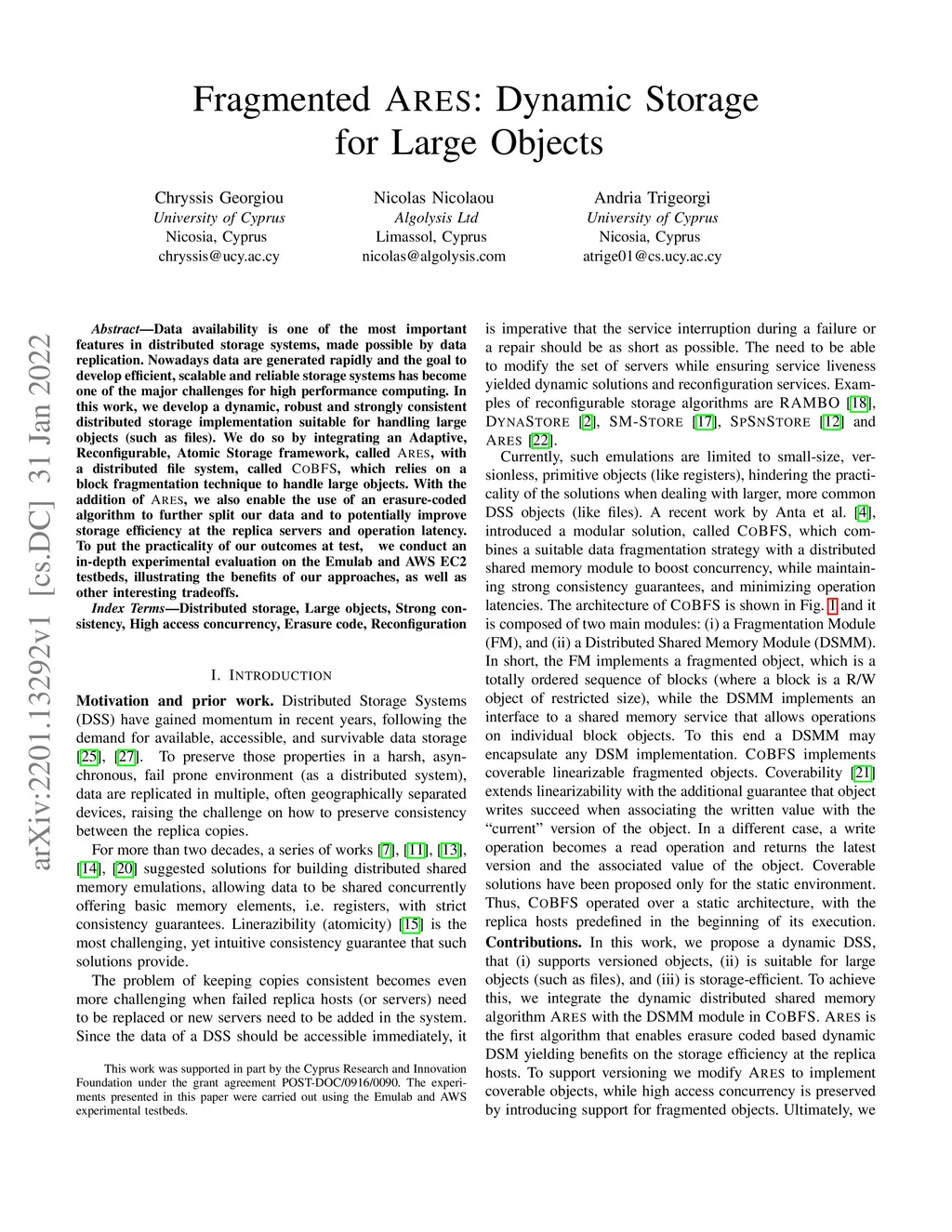 Data availability is one of the most important features in distributed storage systems, made possible by data replication. Nowadays data are generated rapidly and the goal to develop efficient, scalable and reliable storage systems has become one of the major challenges for high performance computing. In this work, we develop a dynamic, robust and strongly consistent distributed storage implementation suitable for handling large objects (such as files). We do so by integrating an Adaptive, Reconfigurable, Atomic Storage framework, called ARES, with a distributed file system, called COBFS, which relies on a block fragmentation technique to handle large objects. With the addition of ARES, we also enable the use of an erasure-coded algorithm to further split our data and to potentially improve storage efficiency at the replica servers and operation latency. To put the practicality of our outcomes at test, we conduct an in-depth experimental evaluation on the Emulab and AWS EC2 testbeds, illustrating the benefits of our approaches, as well as other interesting tradeoffs.