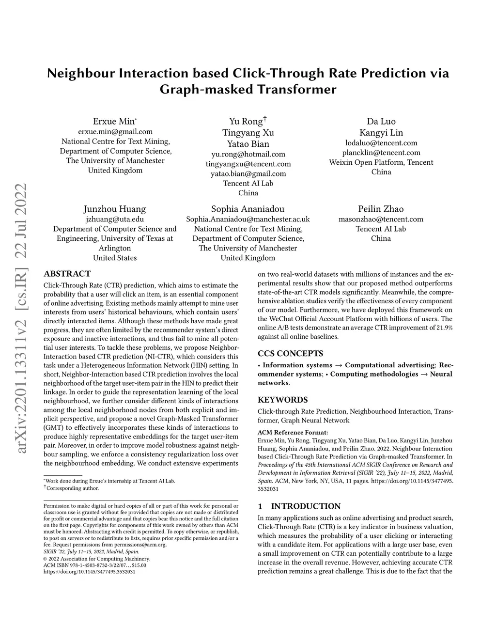 Neighbour Interaction based Click-Through Rate Prediction via