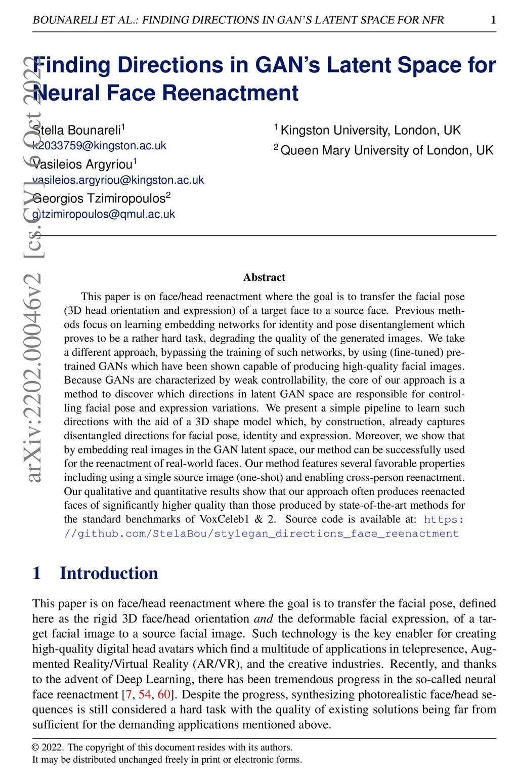 Finding Directions in GAN's Latent Space for Neural Face Reenactment
