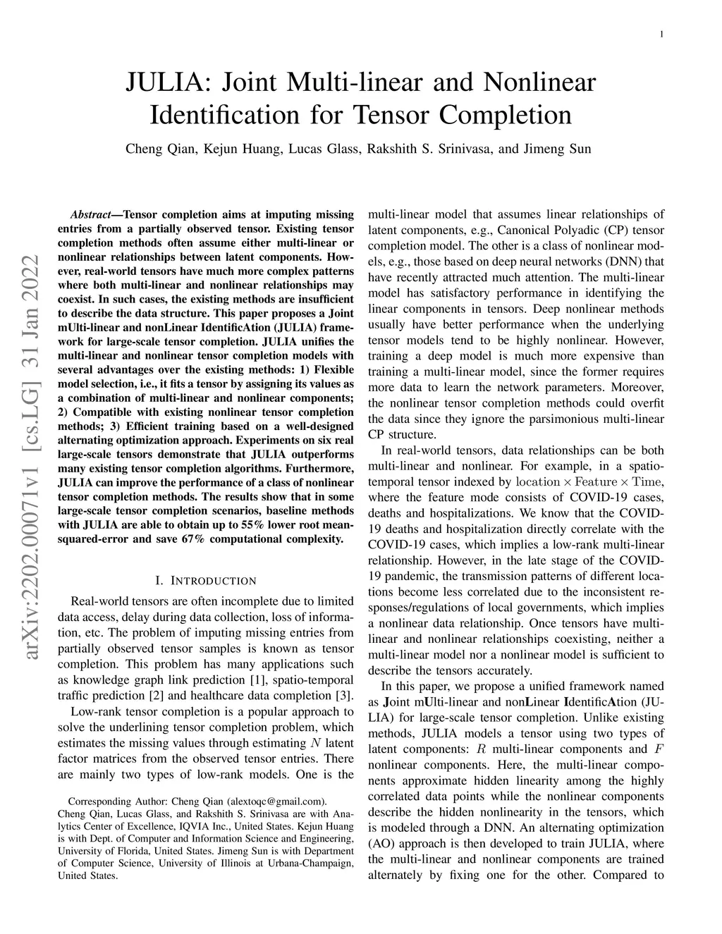 JULIA: Joint Multi-linear and Nonlinear Identification for Tensor