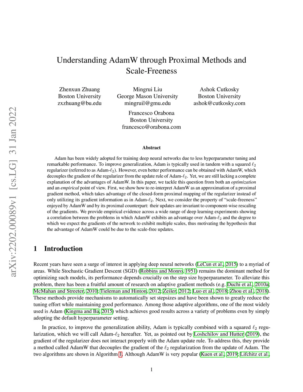 Adam has been widely adopted for training deep neural networks due to less hyperparameter tuning and remarkable performance. To improve generalization, Adam is typically used in tandem with a squared regularizer (referred to as Adam-). However, even better performance can be obtained with AdamW, which decouples the gradient of the regularizer from the update rule of Adam-. Yet, we are still lacking a complete explanation of the advantages of AdamW. In this paper, we tackle this question from both an optimization and an empirical point of view. First, we show how to re-interpret AdamW as an approximation of a proximal gradient method, which takes advantage of the closed-form proximal mapping of the regularizer instead of only utilizing its gradient information as in Adam-. Next, we consider the property of "scale-freeness" enjoyed by AdamW and by its proximal counterpart: their updates are invariant to component-wise rescaling of the gradients. We provide empirical evidence across a wide range of deep learning experiments showing a correlation between the problems in which AdamW exhibits an advantage over Adam- and the degree to which we expect the gradients of the network to exhibit multiple scales, thus motivating the hypothesis that the advantage of AdamW could be due to the scale-free updates.