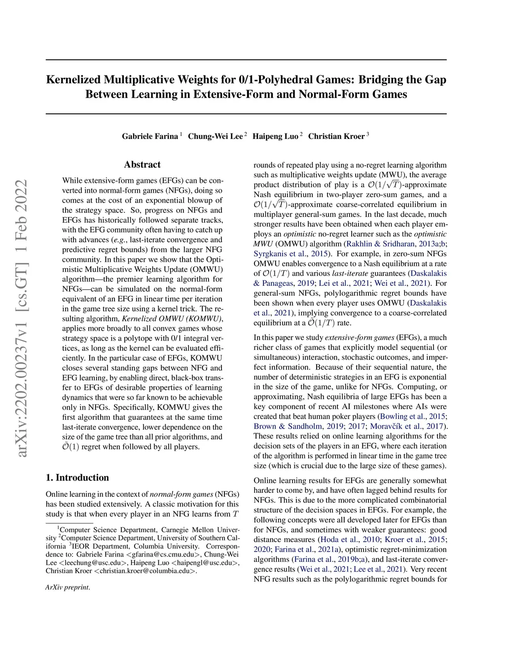 Kernelized Multiplicative Weights for 0/1-Polyhedral Games: Bridging the