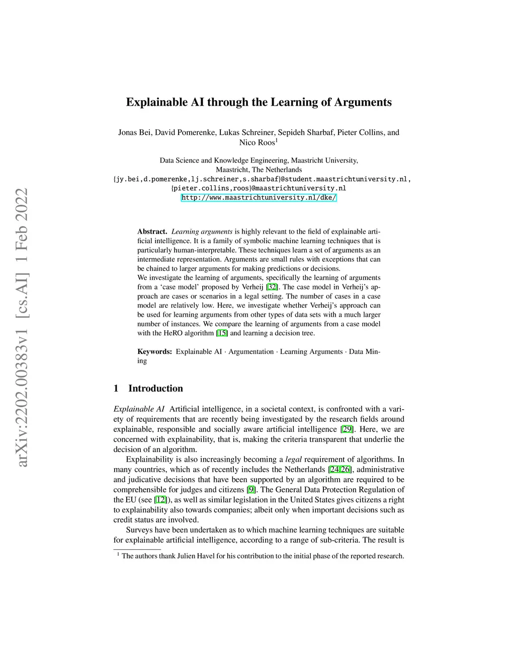 Explainable AI through the Learning of Arguments