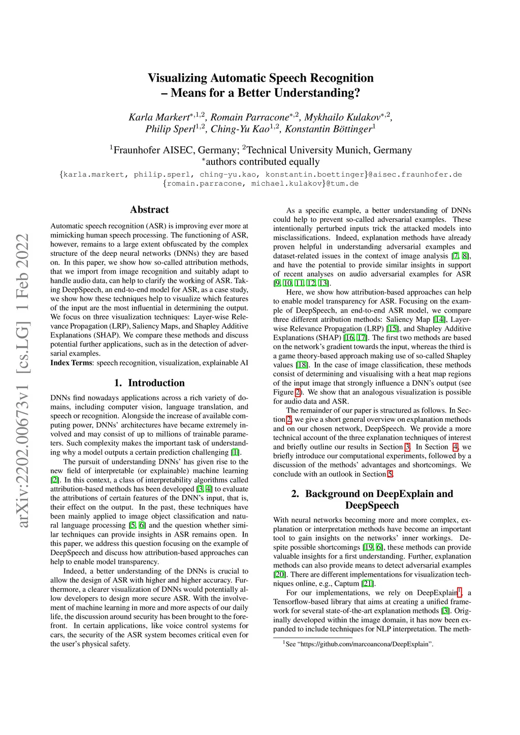 Automatic speech recognition (ASR) is improving ever more at mimicking human speech processing. The functioning of ASR, however, remains to a large extent obfuscated by the complex structure of the deep neural networks (DNNs) they are based on. In this paper, we show how so-called attribution methods, that we import from image recognition and suitably adapt to handle audio data, can help to clarify the working of ASR. Taking DeepSpeech, an end-to-end model for ASR, as a case study, we show how these techniques help to visualize which features of the input are the most influential in determining the output. We focus on three visualization techniques: Layer-wise Relevance Propagation (LRP), Saliency Maps, and Shapley Additive Explanations (SHAP). We compare these methods and discuss potential further applications, such as in the detection of adversarial examples.