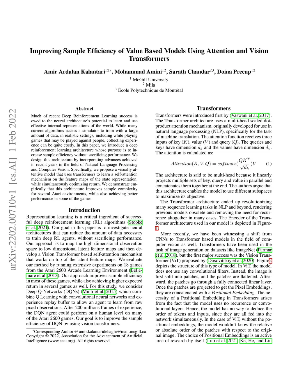 Improving Sample Efficiency of Value Based Models Using Attention and