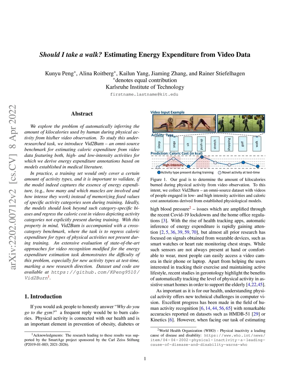 Should I take a walk? Estimating Energy Expenditure from Video Data