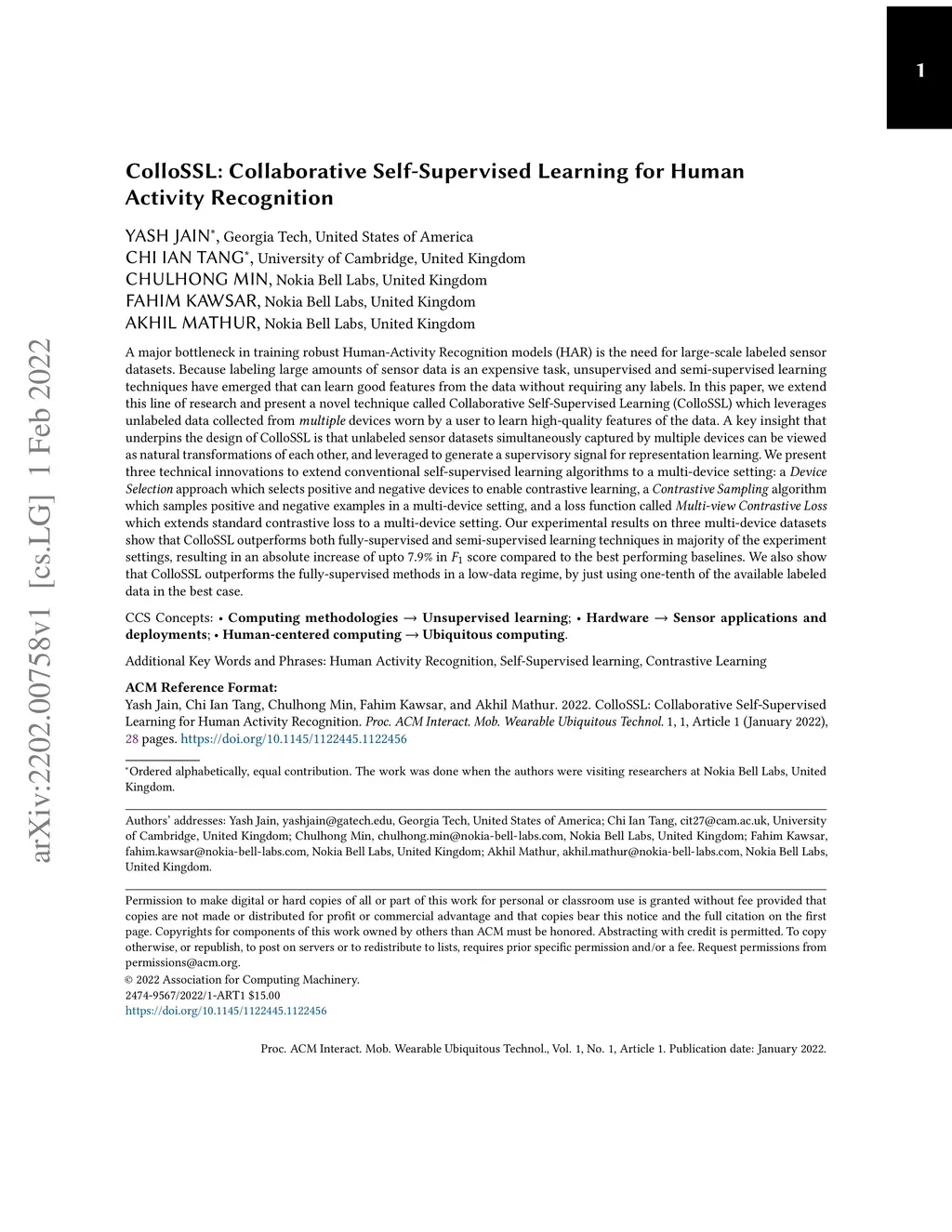 ColloSSL: Collaborative Self-Supervised Learning for Human Activity
