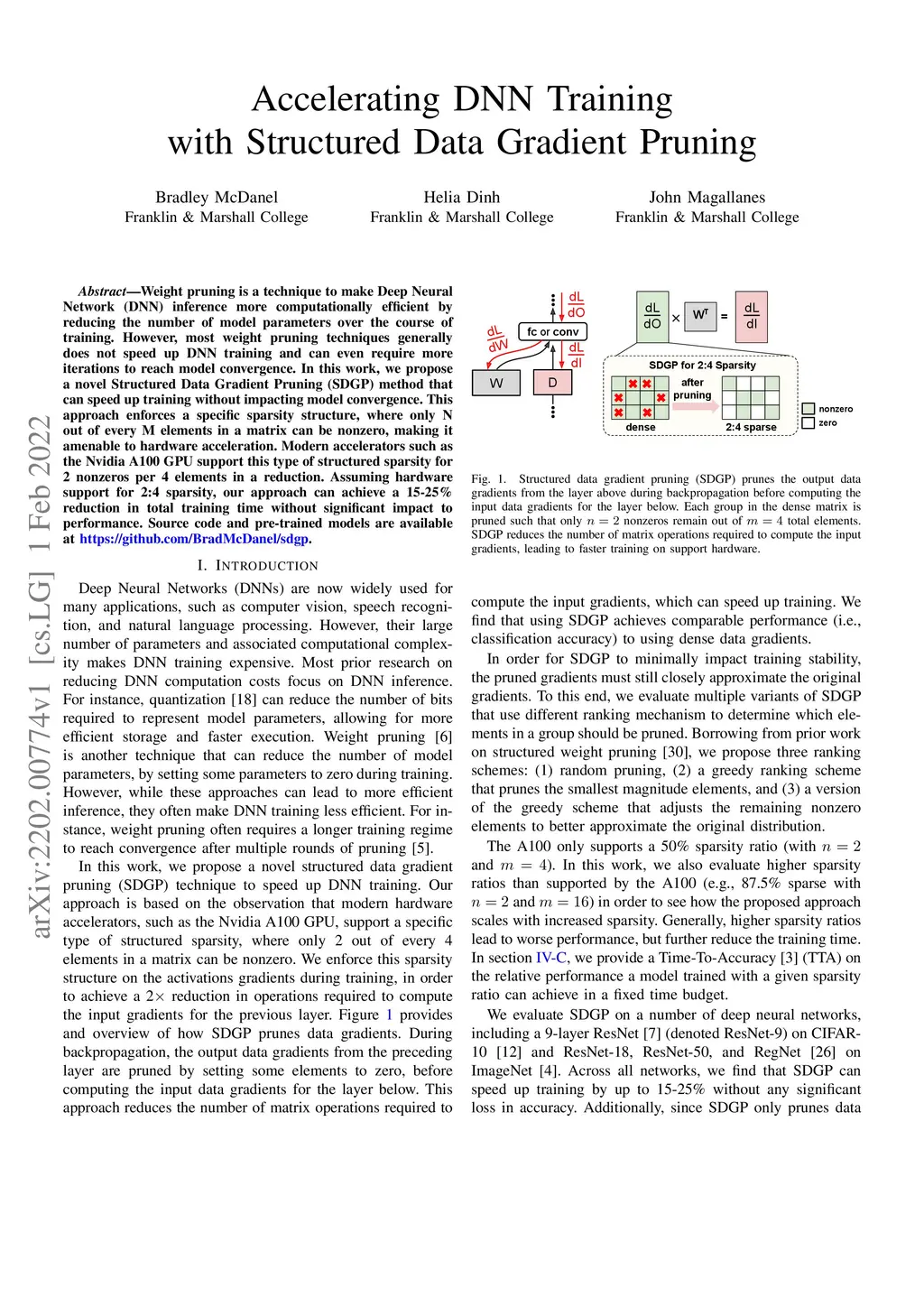 Accelerating DNN Training with Structured Data Gradient Pruning