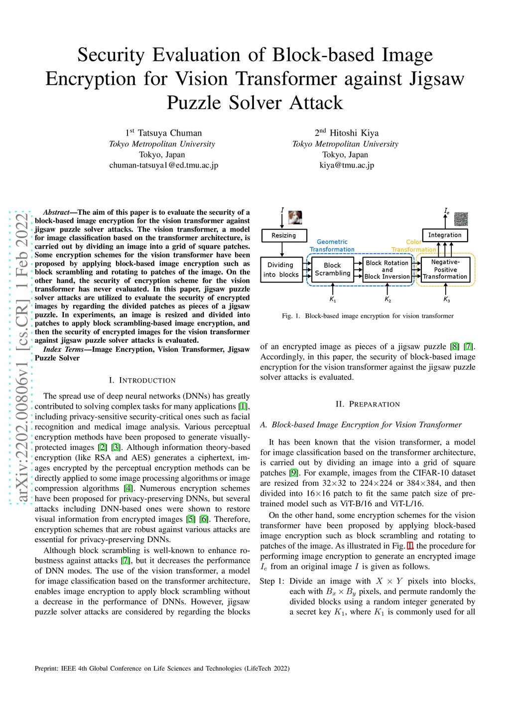 Security Evaluation of Block-based Image Encryption for Vision