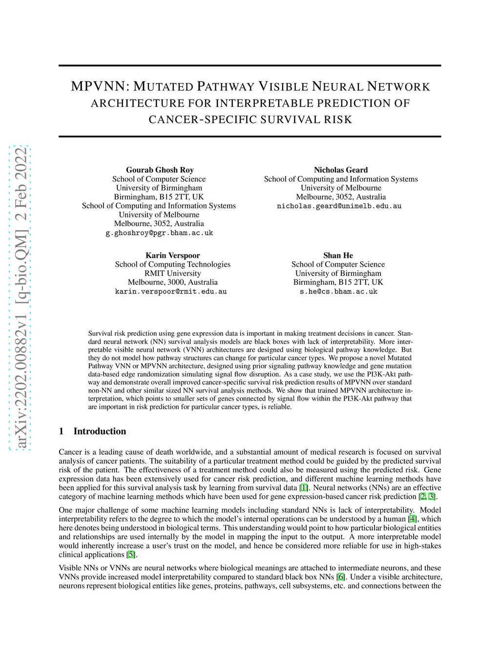 MPVNN: Mutated Pathway Visible Neural Network Architecture for