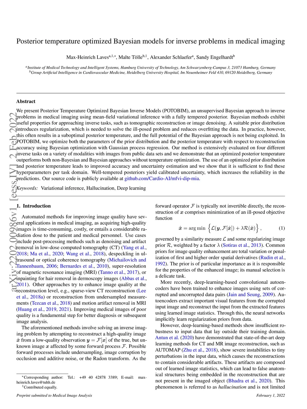 We present Posterior Temperature Optimized Bayesian Inverse Models (POTOBIM), an unsupervised Bayesian approach to inverse problems in medical imaging using mean-field variational inference with a fully tempered posterior. Bayesian methods exhibit useful properties for approaching inverse tasks, such as tomographic reconstruction or image denoising. A suitable prior distribution introduces regularization, which is needed to solve the ill-posed problem and reduces overfitting the data. In practice, however, this often results in a suboptimal posterior temperature, and the full potential of the Bayesian approach is not being exploited. In POTOBIM, we optimize both the parameters of the prior distribution and the posterior temperature with respect to reconstruction accuracy using Bayesian optimization with Gaussian process regression. Our method is extensively evaluated on four different inverse tasks on a variety of modalities with images from public data sets and we demonstrate that an optimized posterior temperature outperforms both non-Bayesian and Bayesian approaches without temperature optimization. The use of an optimized prior distribution and posterior temperature leads to improved accuracy and uncertainty estimation and we show that it is sufficient to find these hyperparameters per task domain. Well-tempered posteriors yield calibrated uncertainty, which increases the reliability in the predictions. Our source code is publicly available at github.com/Cardio-AI/mfvi-dip-mia.