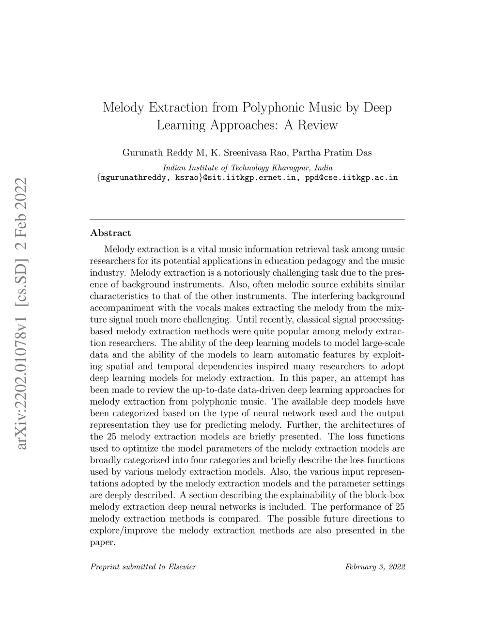 Melody Extraction from Polyphonic Music by Deep Learning Approaches: A