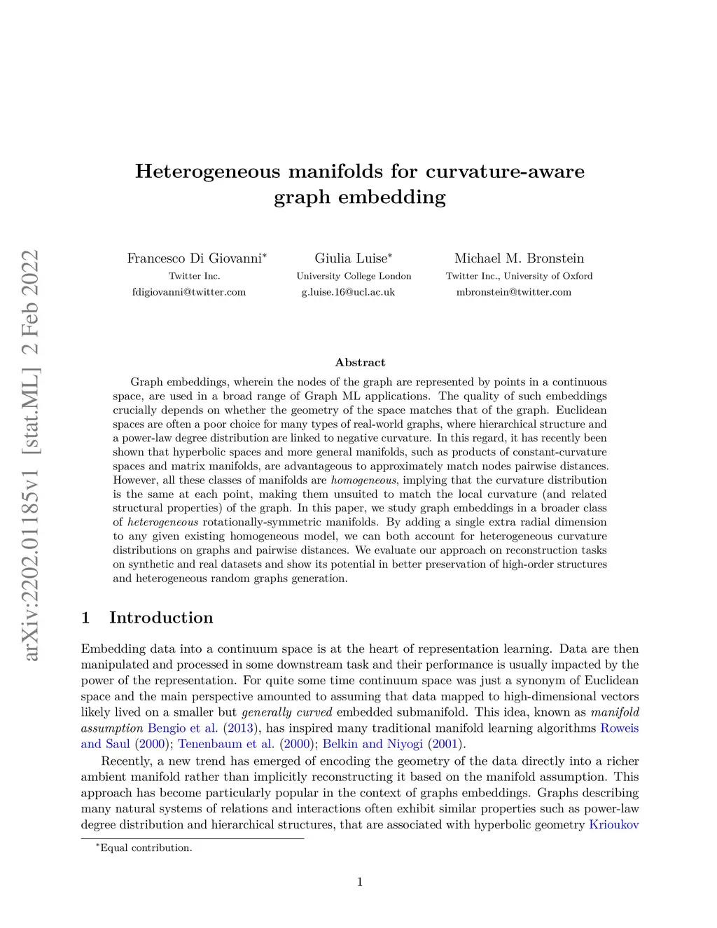 Heterogeneous manifolds for curvature-aware graph embedding