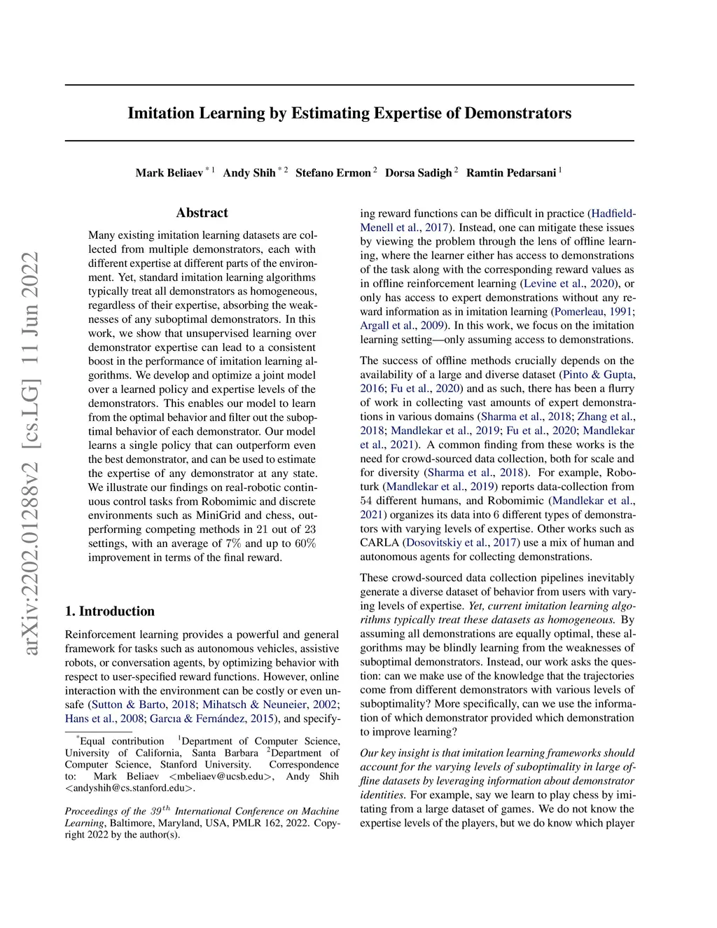 Imitation Learning by Estimating Expertise of Demonstrators