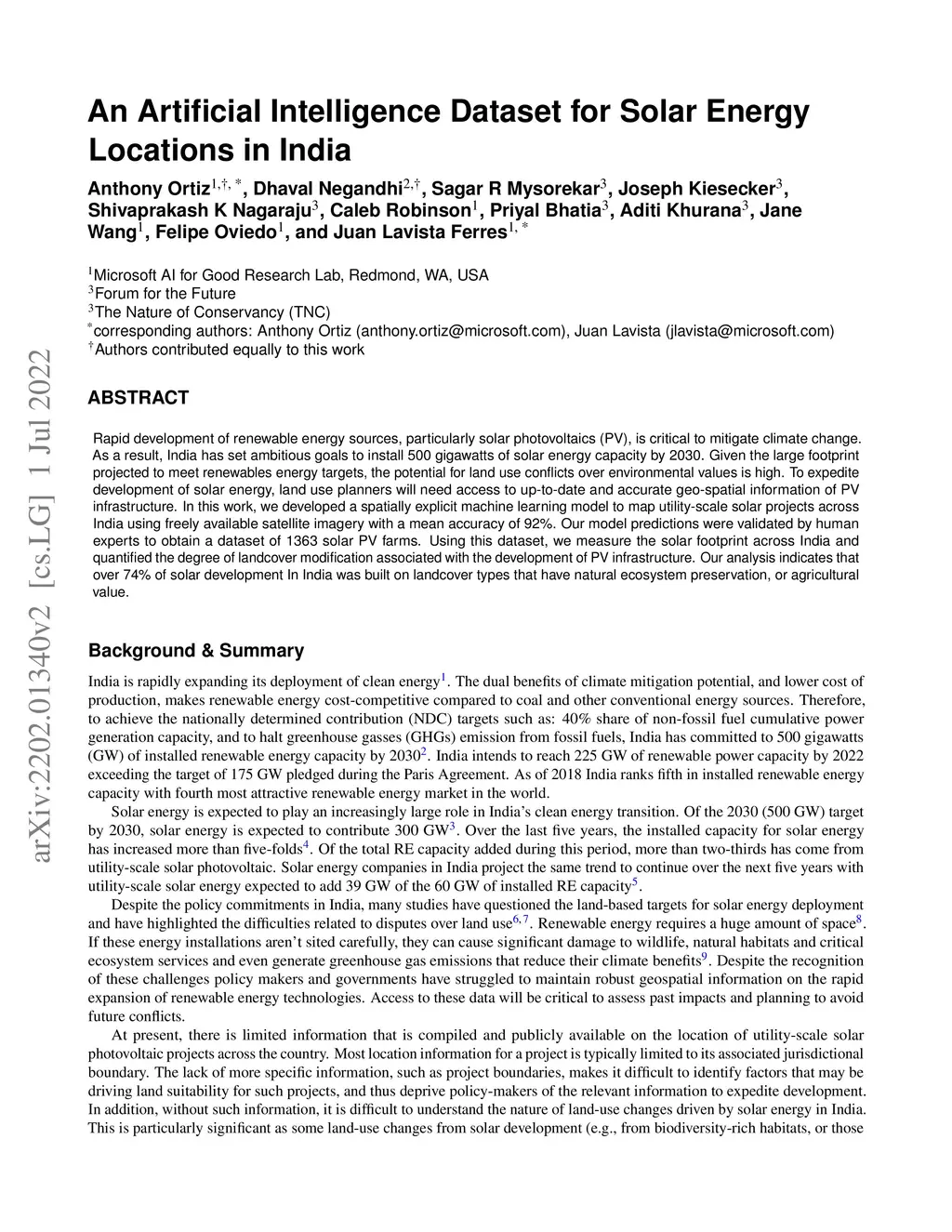 An Artificial Intelligence Dataset for Solar Energy Locations in India