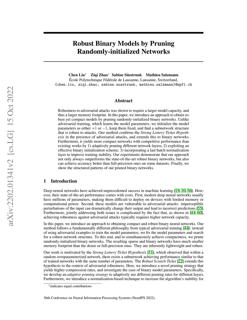 Robust Binary Models by Pruning Randomly-initialized Networks