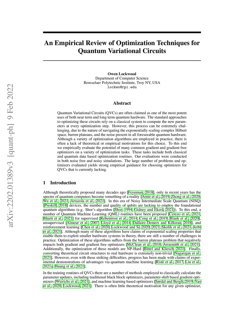 An Empirical Review of Optimization Techniques for Quantum Variational
