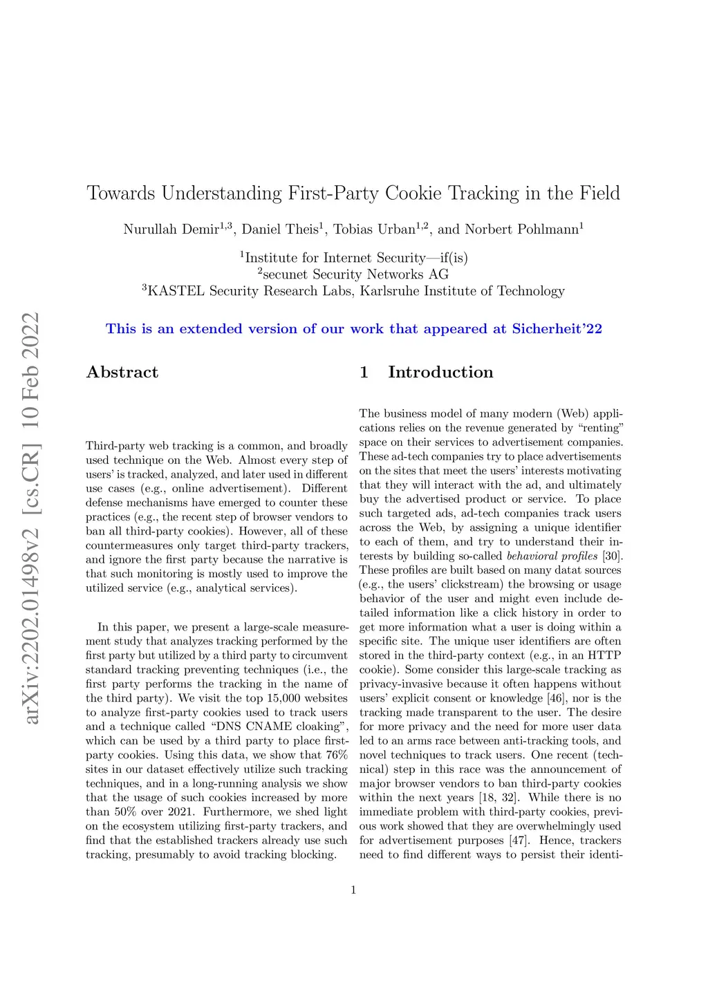 Towards Understanding First-Party Cookie Tracking in the Field