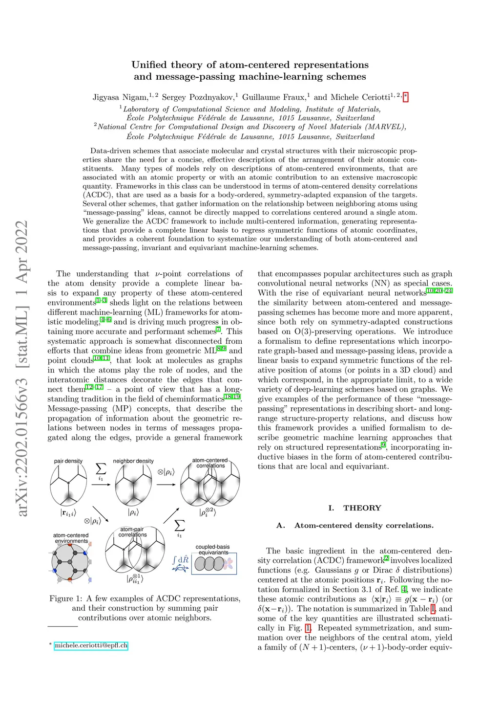 Data-driven schemes that associate molecular and crystal structures with their microscopic properties share the need for a concise, effective description of the arrangement of their atomic constituents. Many types of models rely on descriptions of atom-centered environments, that are associated with an atomic property or with an atomic contribution to an extensive macroscopic quantity. Frameworks in this class can be understood in terms of atom-centered density correlations (ACDC), that are used as a basis for a body-ordered, symmetry-adapted expansion of the targets. Several other schemes, that gather information on the relationship between neighboring atoms using "message-passing" ideas, cannot be directly mapped to correlations centered around a single atom. We generalize the ACDC framework to include multi-centered information, generating representations that provide a complete linear basis to regress symmetric functions of atomic coordinates, and provides a coherent foundation to systematize our understanding of both atom-centered and message-passing, invariant and equivariant machine-learning schemes.