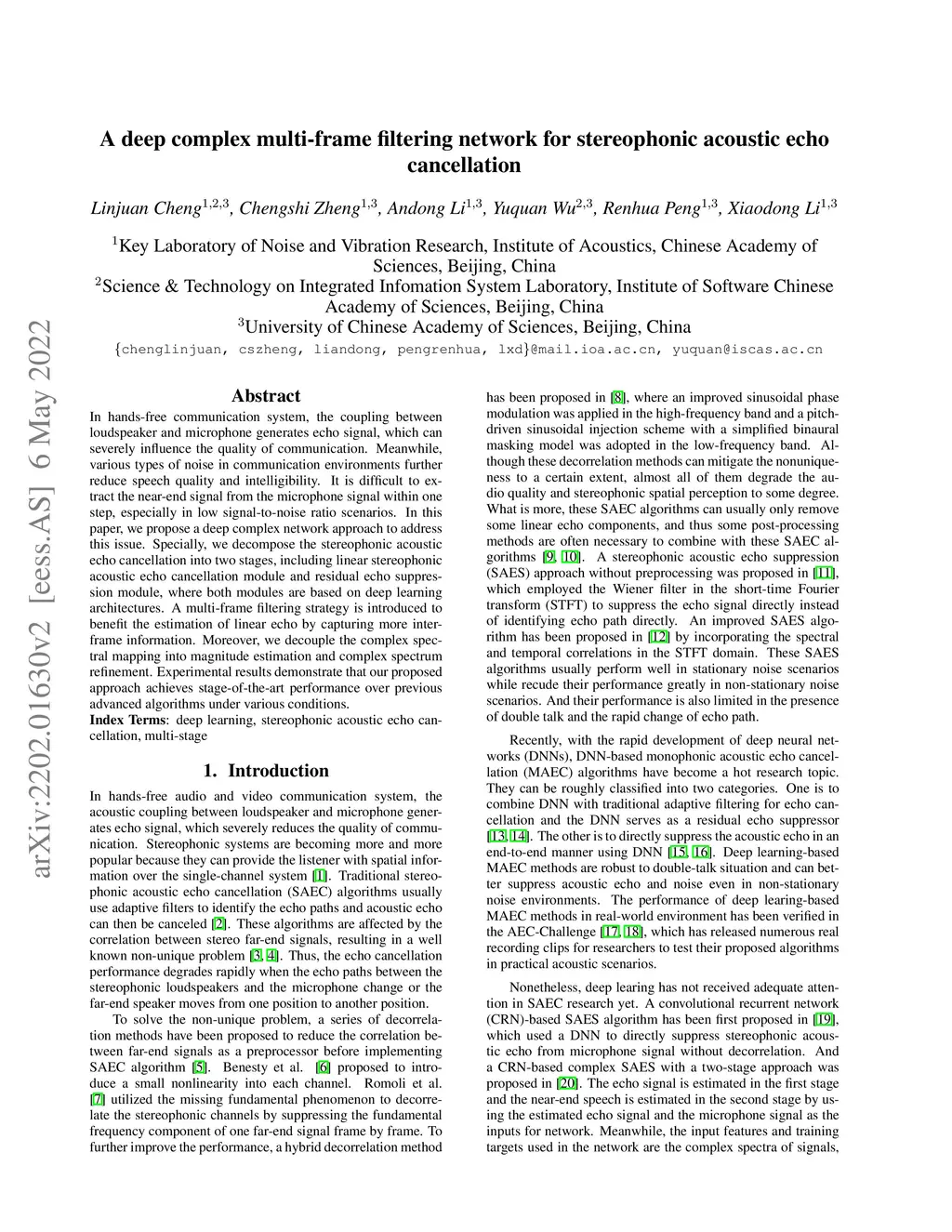 A deep complex multi-frame filtering network for stereophonic acoustic