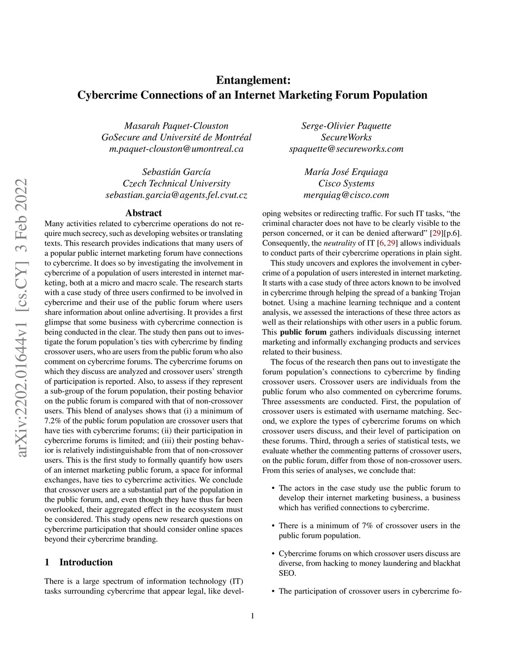 Entanglement: Cybercrime Connections of an Internet Marketing Forum