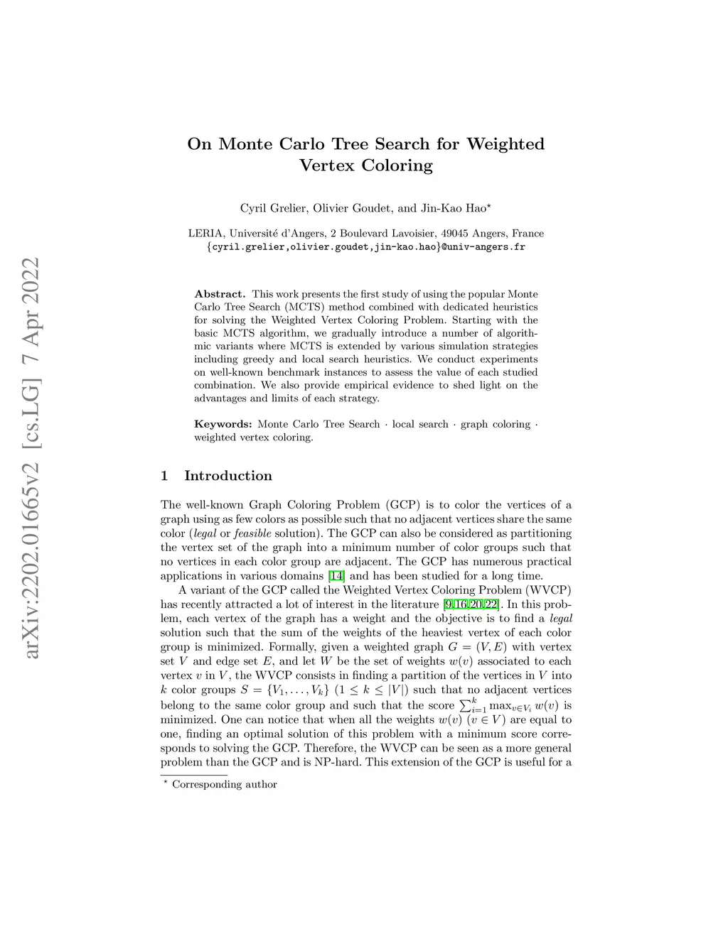 On Monte Carlo Tree Search for Weighted Vertex Coloring