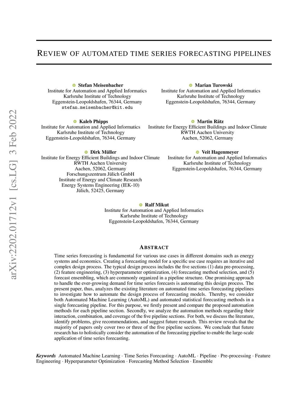 Review of automated time series forecasting pipelines