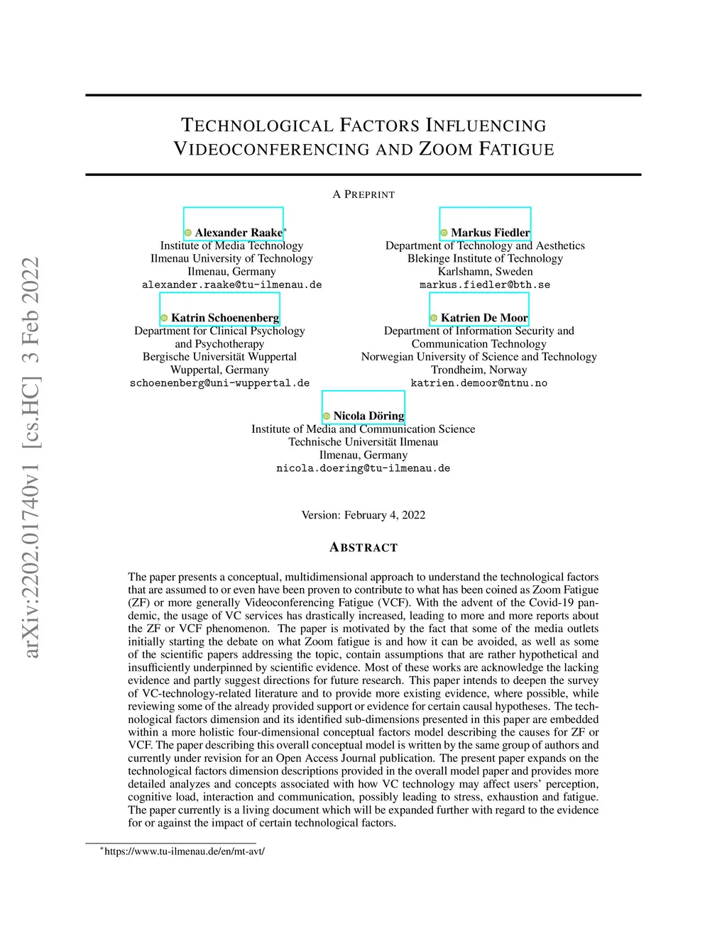 Technological Factors Influencing Videoconferencing and Zoom Fatigue