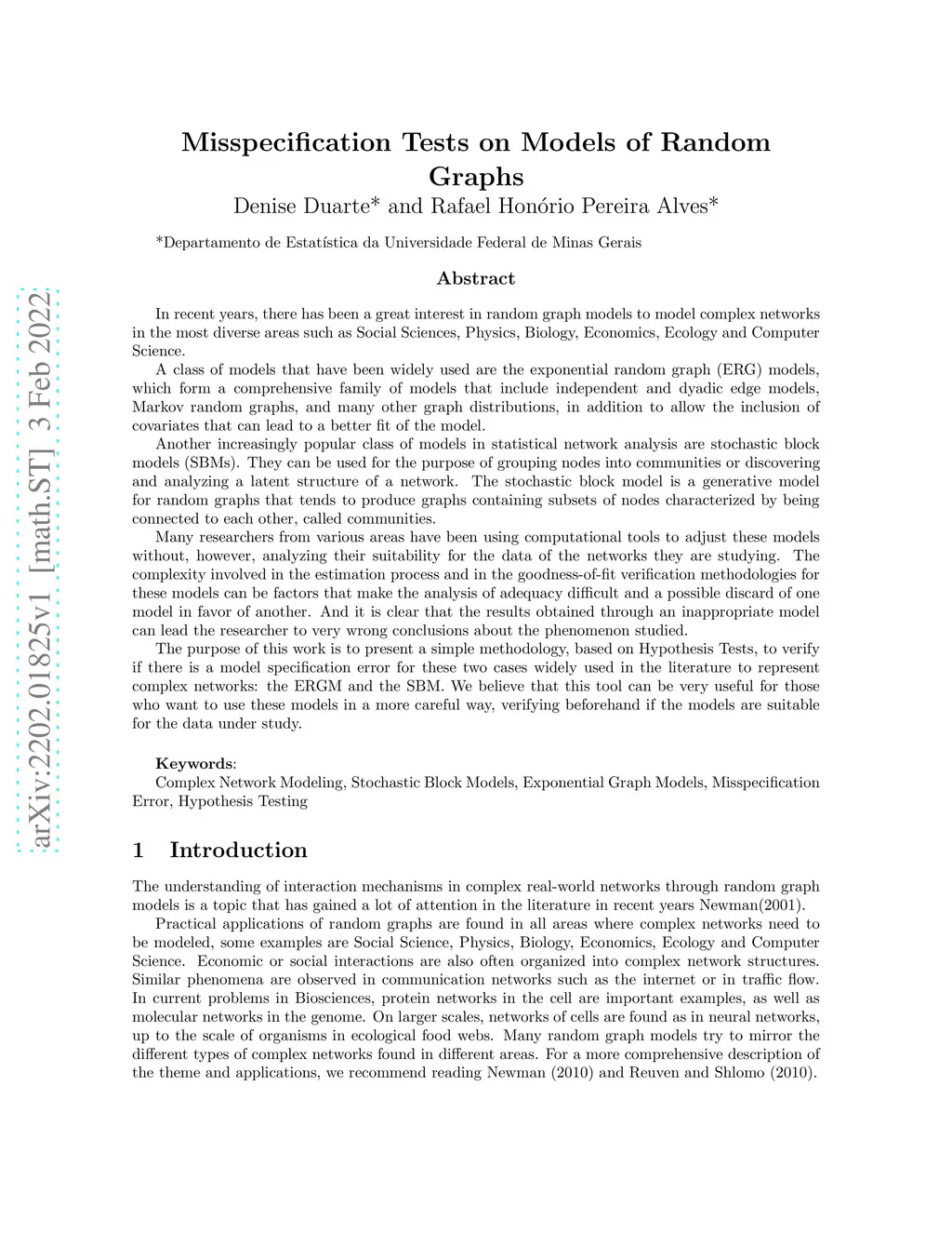 A class of models that have been widely used are the exponential random graph (ERG) models, which form a comprehensive family of models that include independent and dyadic edge models, Markov random graphs, and many other graph distributions, in addition to allow the inclusion of covariates that can lead to a better fit of the model. Another increasingly popular class of models in statistical network analysis are stochastic block models (SBMs). They can be used for the purpose of grouping nodes into communities or discovering and analyzing a latent structure of a network. The stochastic block model is a generative model for random graphs that tends to produce graphs containing subsets of nodes characterized by being connected to each other, called communities. Many researchers from various areas have been using computational tools to adjust these models without, however, analyzing their suitability for the data of the networks they are studying. The complexity involved in the estimation process and in the goodness-of-fit verification methodologies for these models can be factors that make the analysis of adequacy difficult and a possible discard of one model in favor of another. And it is clear that the results obtained through an inappropriate model can lead the researcher to very wrong conclusions about the phenomenon studied. The purpose of this work is to present a simple methodology, based on Hypothesis Tests, to verify if there is a model specification error for these two cases widely used in the literature to represent complex networks: the ERGM and the SBM. We believe that this tool can be very useful for those who want to use these models in a more careful way, verifying beforehand if the models are suitable for the data under study.