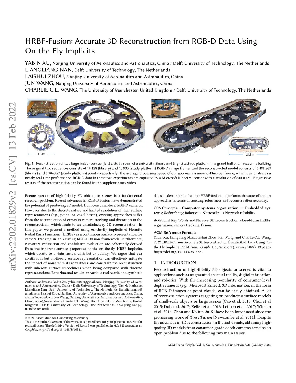 HRBF-Fusion: Accurate 3D reconstruction from RGB-D data using on-the-fly