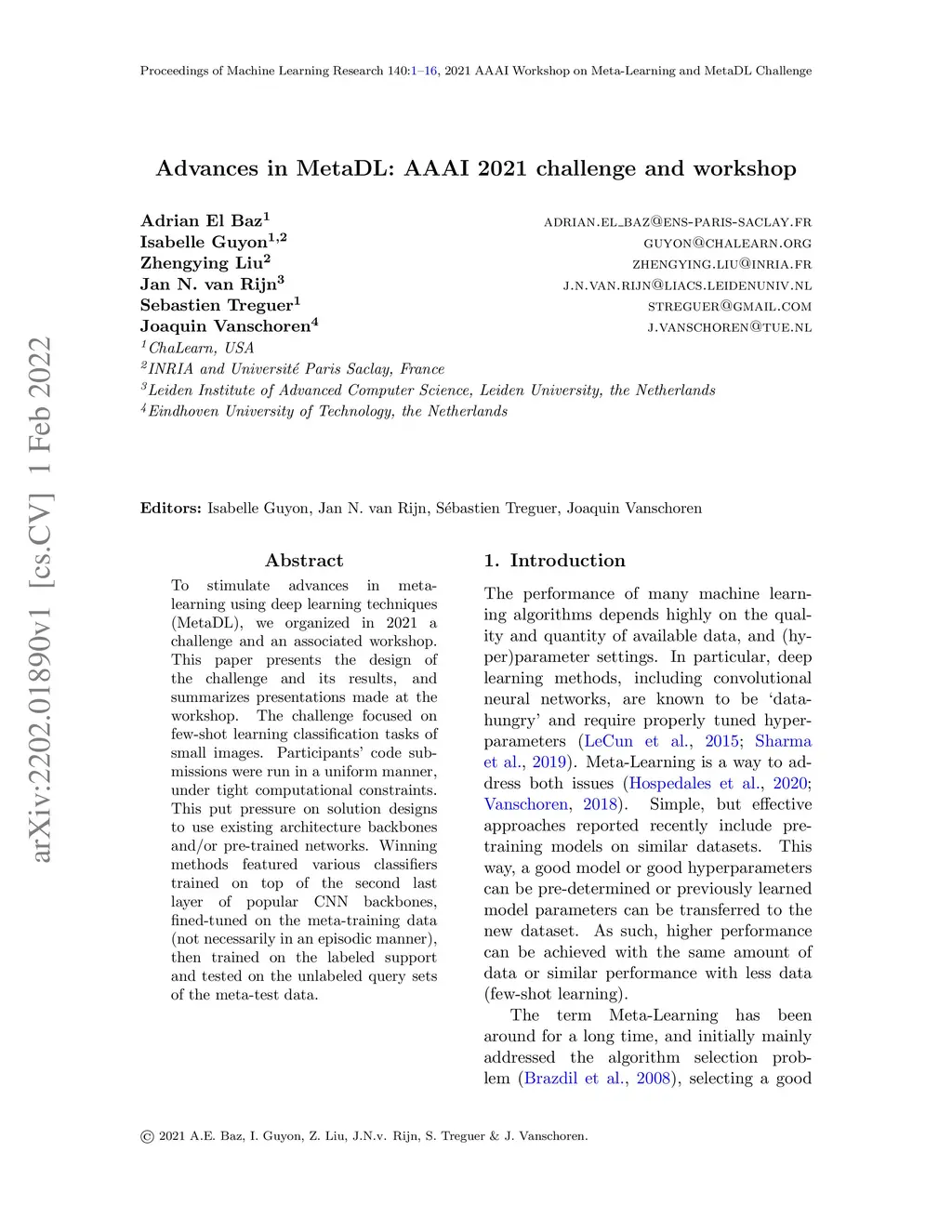 Advances in MetaDL: AAAI 2021 challenge and workshop