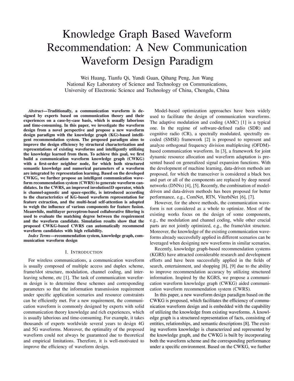 Knowledge Graph Based Waveform Recommendation: A New Communication