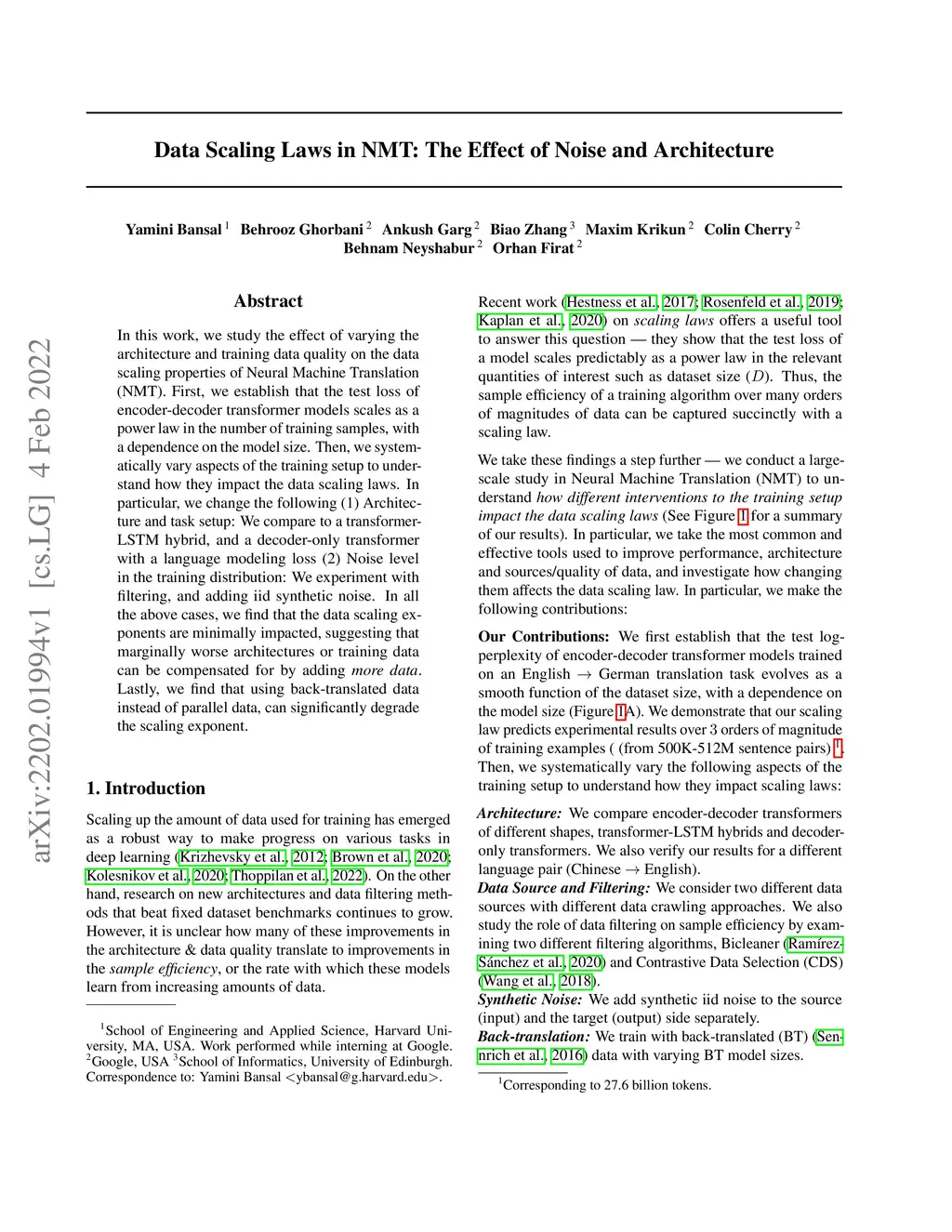Data Scaling Laws in NMT: The Effect of Noise and Architecture