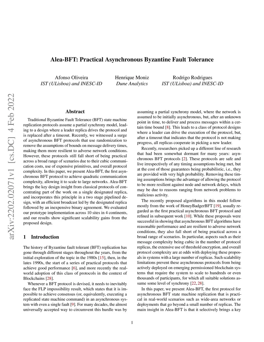 Alea-BFT: Practical Asynchronous Byzantine Fault Tolerance