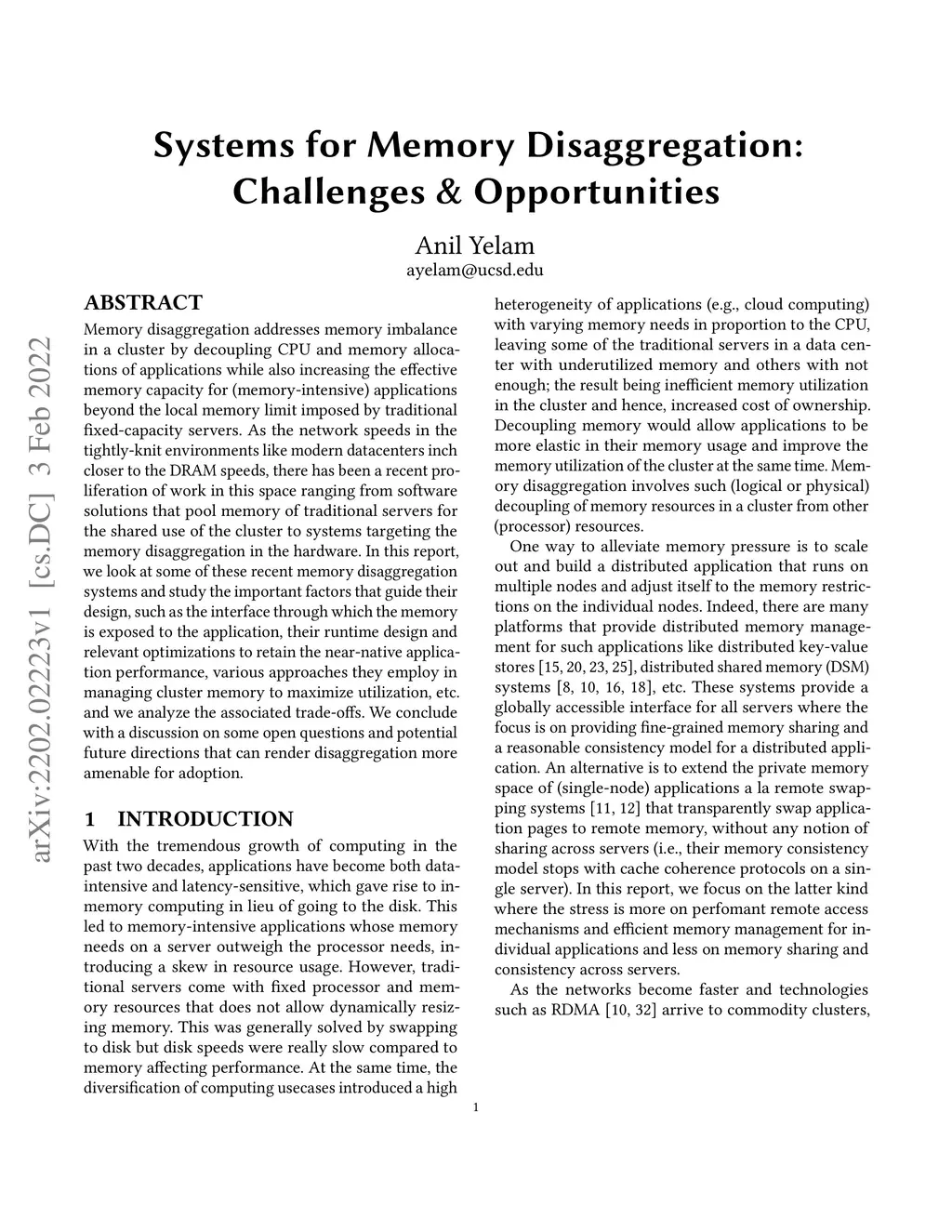 Systems for Memory Disaggregation: Challenges & Opportunities