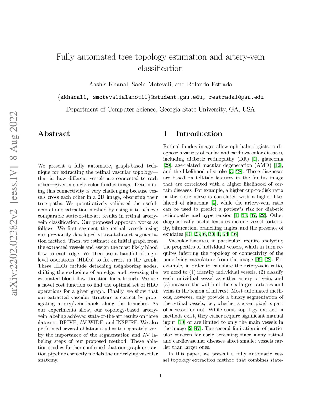 Fully Automated Tree Topology Estimation and Artery-Vein Classification