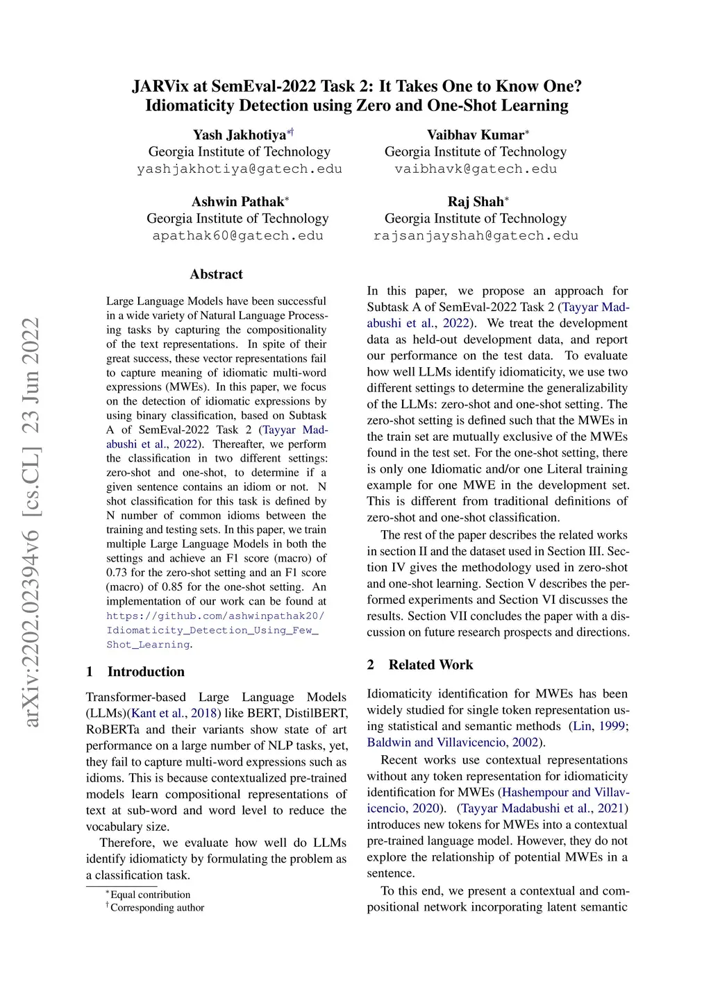 JARVix at SemEval-2022 Task 2: It Takes One to Know One? Idiomaticity
