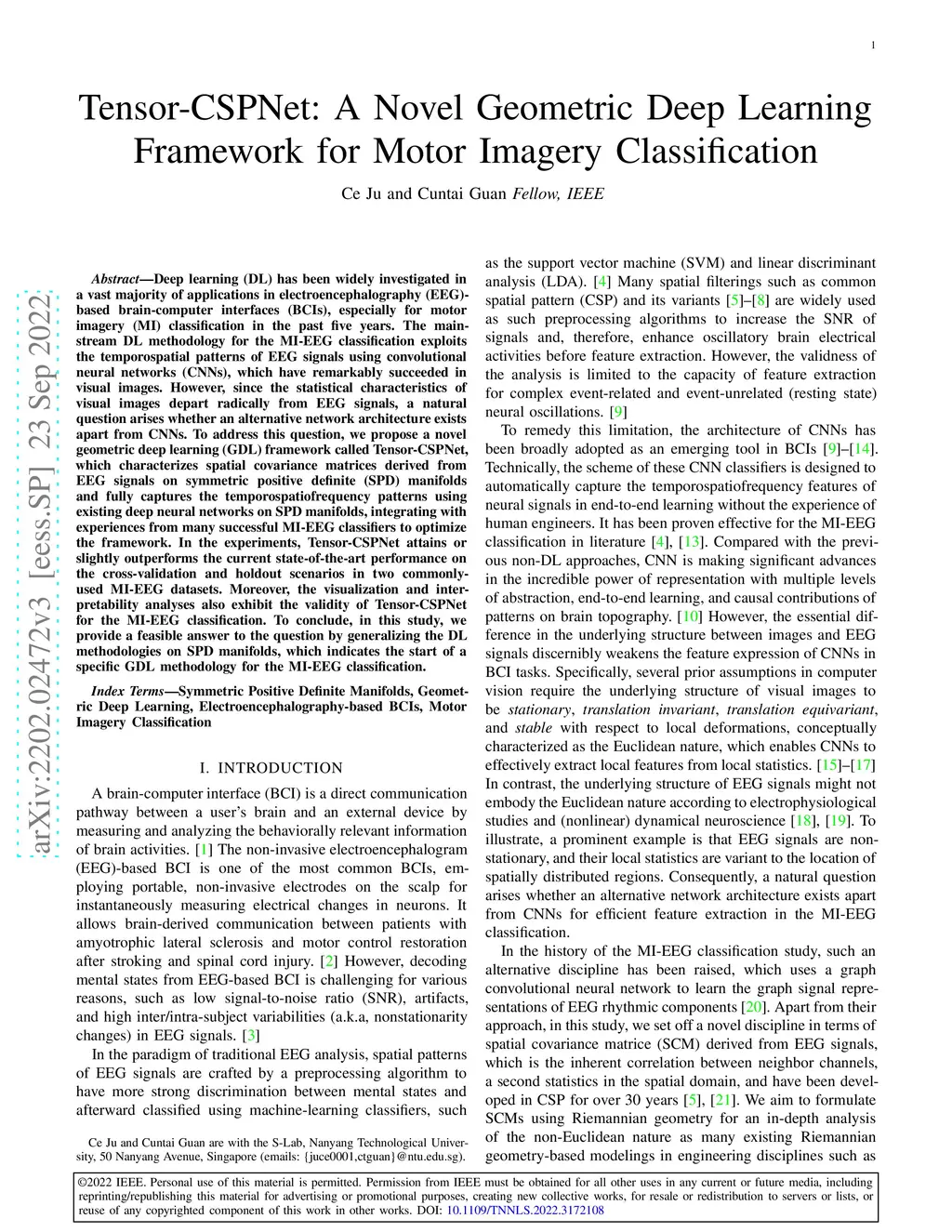 Deep learning (DL) has been widely investigated in a vast majority of applications in electroencephalography (EEG)-based brain-computer interfaces (BCIs), especially for motor imagery (MI) classification in the past five years. The mainstream DL methodology for the MI-EEG classification exploits the temporospatial patterns of EEG signals using convolutional neural networks (CNNs), which have been particularly successful in visual images. However, since the statistical characteristics of visual images depart radically from EEG signals, a natural question arises whether an alternative network architecture exists apart from CNNs. To address this question, we propose a novel geometric deep learning (GDL) framework called Tensor-CSPNet, which characterizes spatial covariance matrices derived from EEG signals on symmetric positive definite (SPD) manifolds and fully captures the temporospatiofrequency patterns using existing deep neural networks on SPD manifolds, integrating with experiences from many successful MI-EEG classifiers to optimize the framework. In the experiments, Tensor-CSPNet attains or slightly outperforms the current state-of-the-art performance on the cross-validation and holdout scenarios in two commonly-used MI-EEG datasets. Moreover, the visualization and interpretability analyses also exhibit the validity of Tensor-CSPNet for the MI-EEG classification. To conclude, in this study, we provide a feasible answer to the question by generalizing the DL methodologies on SPD manifolds, which indicates the start of a specific GDL methodology for the MI-EEG classification.