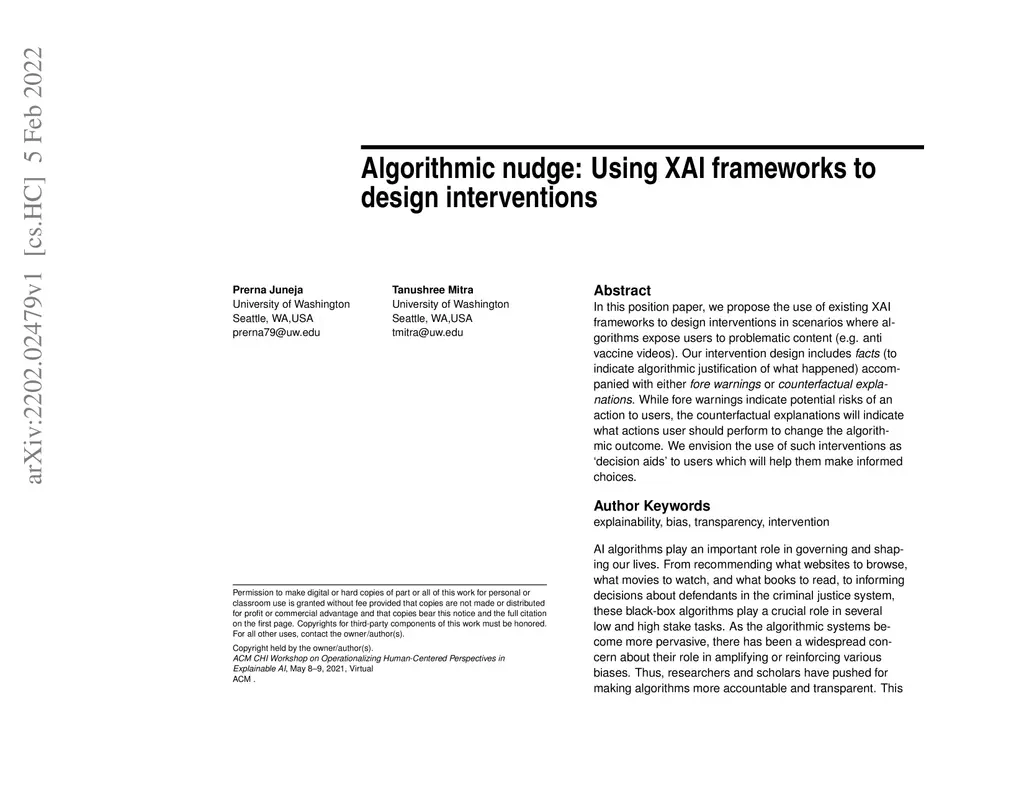 In this position paper, we propose the use of existing XAI frameworks to design interventions in scenarios where algorithms expose users to problematic content (e.g. anti vaccine videos). Our intervention design includes facts (to indicate algorithmic justification of what happened) accompanied with either fore warnings or counterfactual explanations. While fore warnings indicate potential risks of an action to users, the counterfactual explanations will indicate what actions user should perform to change the algorithmic outcome. We envision the use of such interventions as `decision aids' to users which will help them make informed choices.