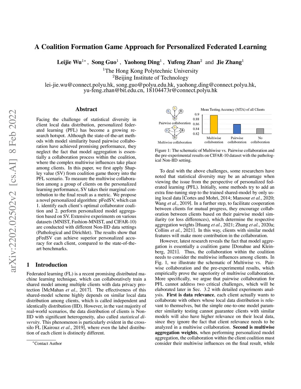 Facing the challenge of statistical diversity in client local data distribution, personalized federated learning (PFL) has become a growing research hotspot. Although the state-of-the-art methods with model similarity-based pairwise collaboration have achieved promising performance, they neglect the fact that model aggregation is essentially a collaboration process within the coalition, where the complex multiwise influences take place among clients. In this paper, we first apply Shapley value (SV) from coalition game theory into the PFL scenario. To measure the multiwise collaboration among a group of clients on the personalized learning performance, SV takes their marginal contribution to the final result as a metric. We propose a novel personalized algorithm: pFedSV, which can 1. identify each client's optimal collaborator coalition and 2. perform personalized model aggregation based on SV. Extensive experiments on various datasets (MNIST, Fashion-MNIST, and CIFAR-10) are conducted with different Non-IID data settings (Pathological and Dirichlet). The results show that pFedSV can achieve superior personalized accuracy for each client, compared to the state-of-the-art benchmarks.