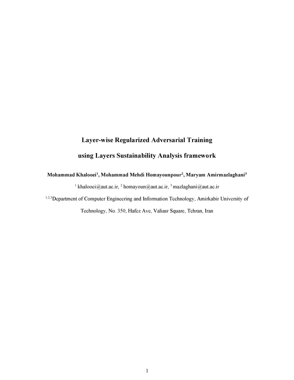 Layer-wise Regularized Adversarial Training using Layers Sustainability