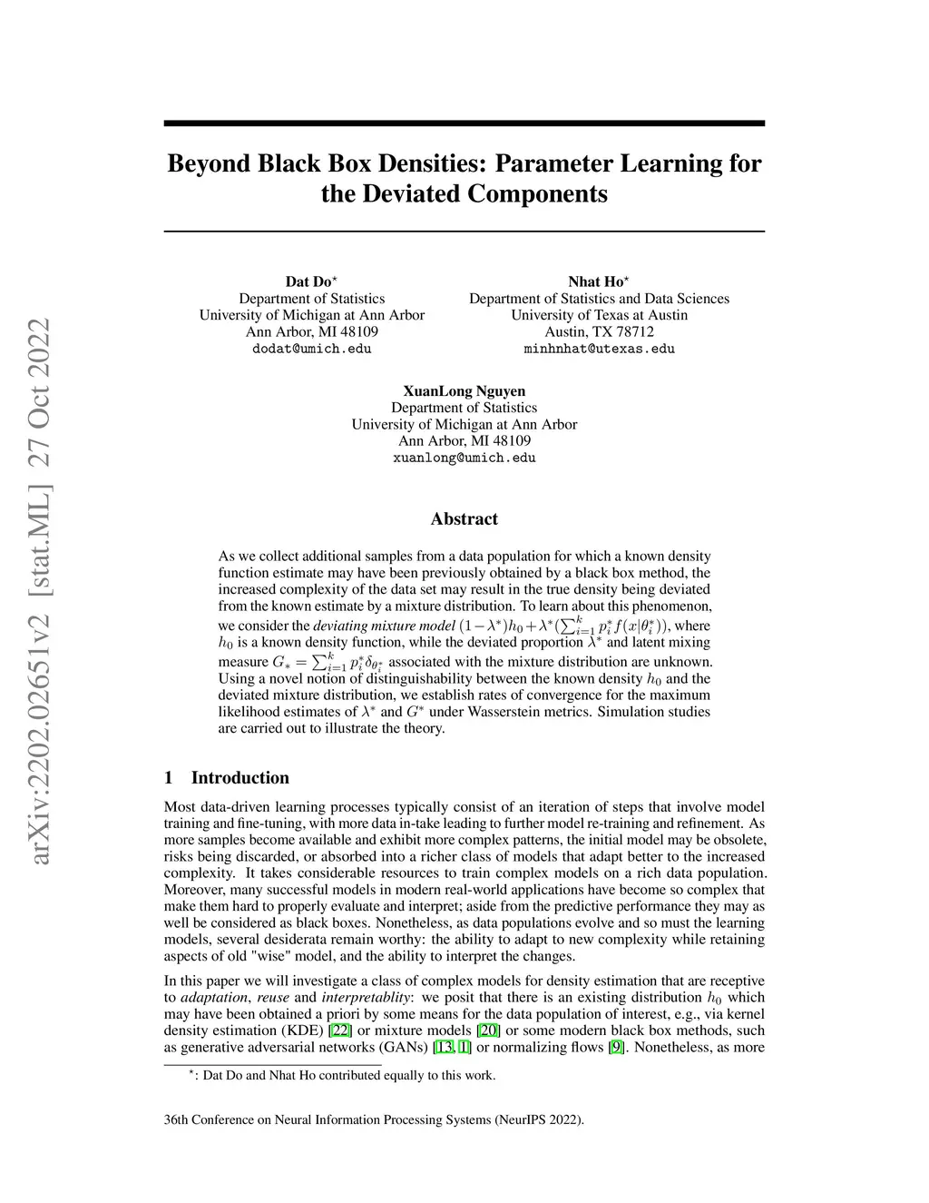 As we collect additional samples from a data population for which a known density function estimate may have been previously obtained by a black box method, the increased complexity of the data set may result in the true density being deviated from the known estimate by a mixture distribution. To model this phenomenon, we consider the \emph{deviating mixture model} , where is a known density function, while the deviated proportion and latent mixing measure associated with the mixture distribution are unknown. Via a novel notion of distinguishability between the known density and the deviated mixture distribution, we establish rates of convergence for the maximum likelihood estimates of and under Wasserstein metric. Simulation studies are carried out to illustrate the theory.