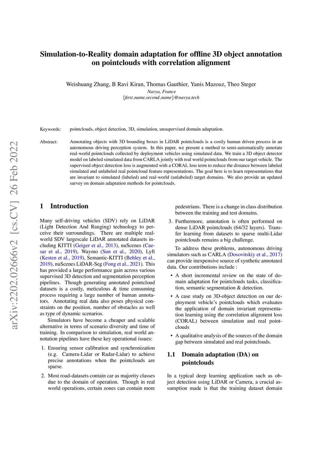 Simulation-to-Reality domain adaptation for offline 3D object annotation on pointclouds with correlation alignment