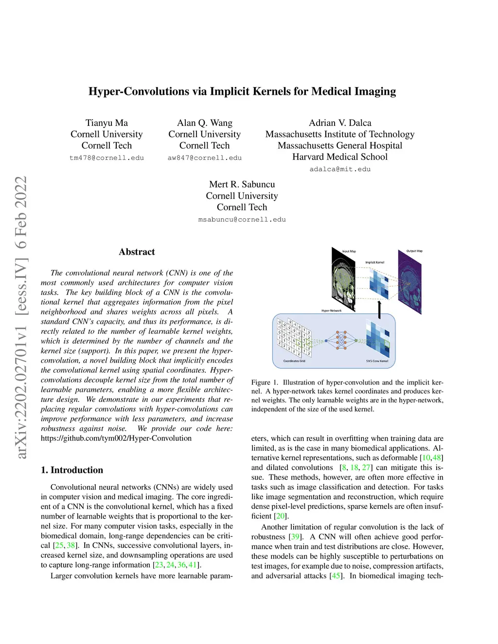Hyper-Convolutions via Implicit Kernels for Medical Imaging