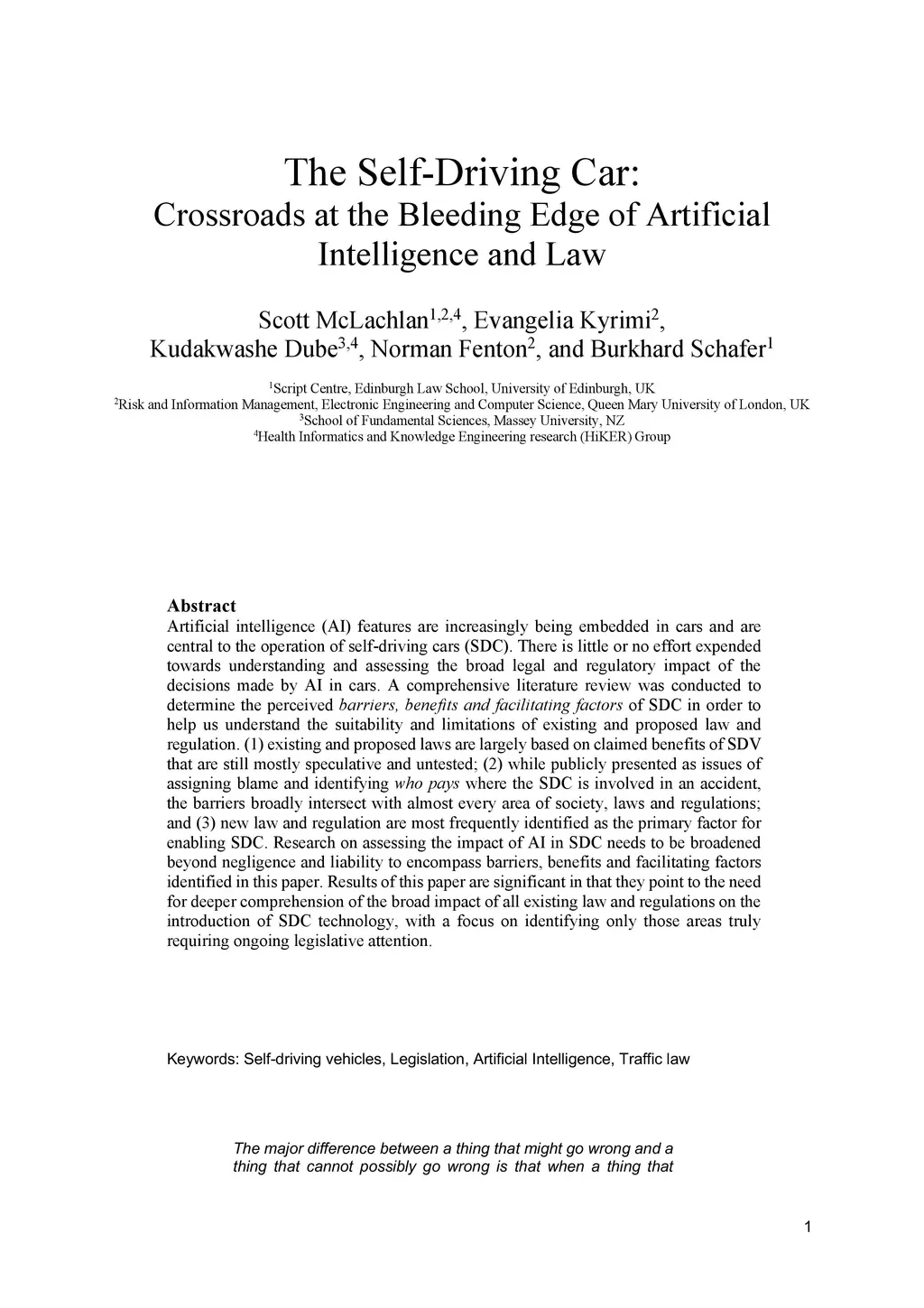 The Self-Driving Car: Crossroads at the Bleeding Edge of Artificial