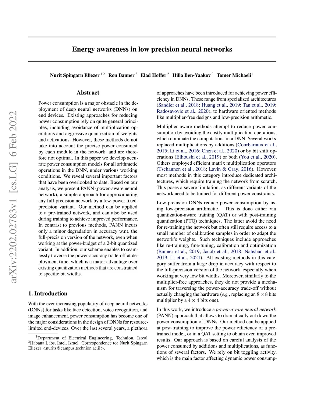 Energy awareness in low precision neural networks